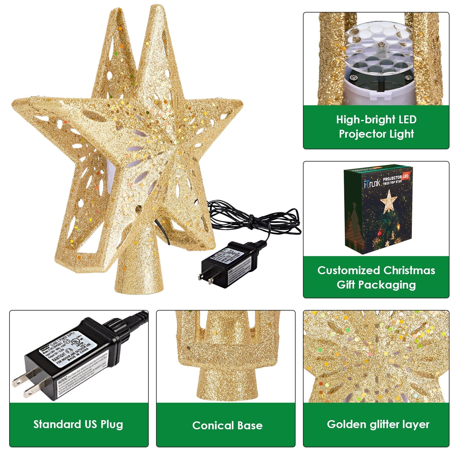 🎀Lighted Star Tree Topper with 3D Rotating Snowflake Projector