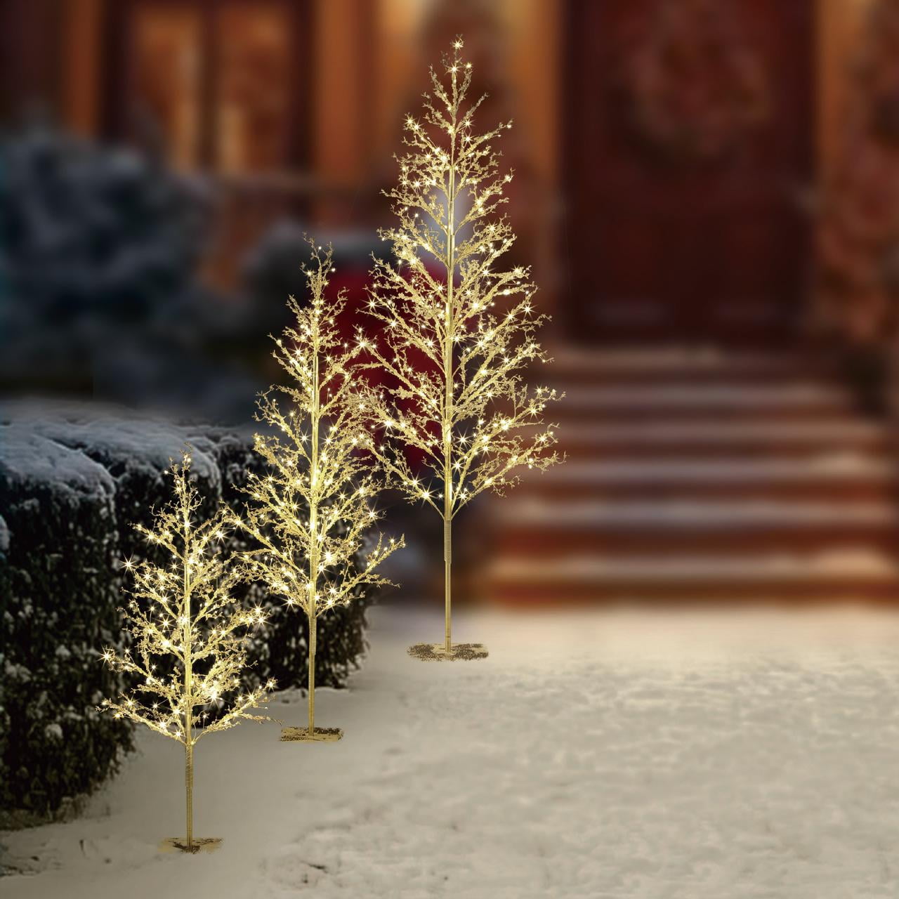- Champagne Branches: Crafted with elegant champagne gold branches, these trees form a perfect silhouette for holiday decor or as a year-round accent piece.