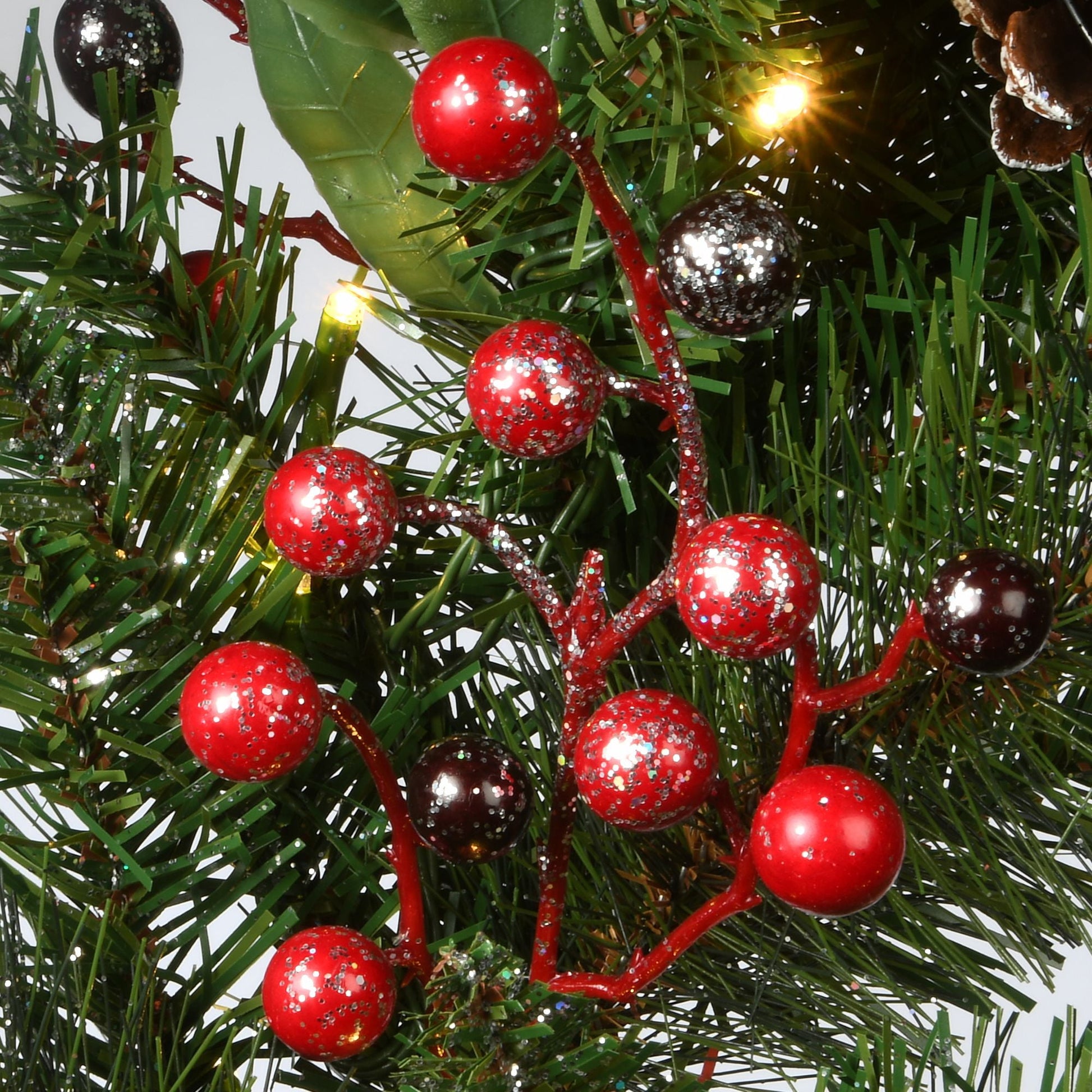 - Festive Embellishments: The wreath is beautifully trimmed with red berries, pinecones, and silver glittered eucalyptus leaves for a festive appearance.